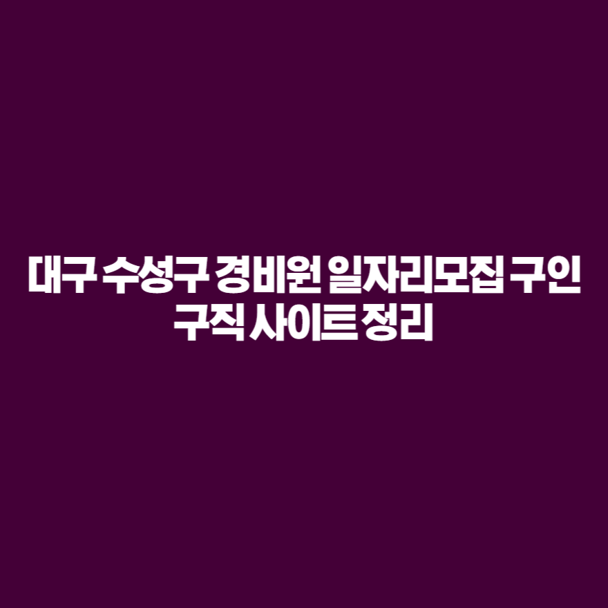 대구 수성구에서 경비원으로 일하고 싶다면, 아래의 구인구직 사이트를 활용해보세요. 이 사이트들은 다양한 경비원 모집 공고를 제공하고 있어 많은 도움이 될 거예요.